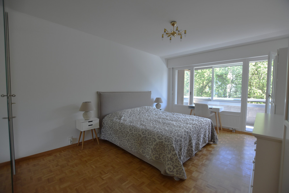 Appartement de 124 m2 entièrement rénové et meublé, tout proche de la ville et dans la tranquillité. Gare du Léman Express à 900 m. Prestations de luxe : 2 piscines chauffées : intérieure et extérieure avec sauna, douches (équipement digne d'un 5 étoiles). Magnifique parc.